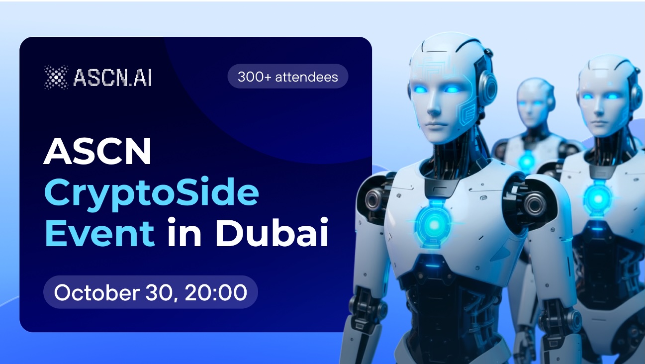 Il Side Event di ASCN.ai si terrà il 30 ottobre a Dubai, in una location privata comunicata ai soli iscritti. Registrazioni aperte su ascn.ai/crypto-event-dubai.