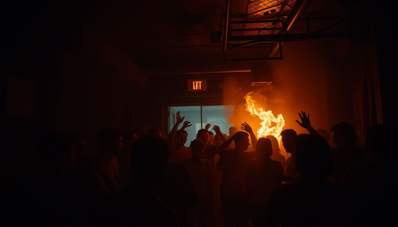 Nel caos, alcuni provano le uscite: una porta di servizio è bloccata da un chiavistello; l’uscita di emergenza coincide con l’ingresso principale, intasato dalla folla. Qualcuno tenta di forzare i varchi, altri cadono, altri ancora cercano aria rasente al pavimento. I primi minuti sono una sequenza di urla, colpi alle porte, corpi a terra, segni inequivocabili di flash over.