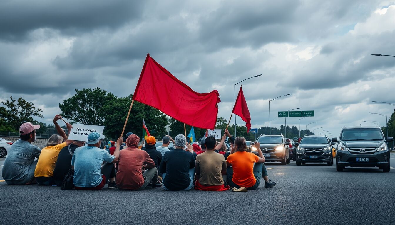 La presenza di striscioni e megafoni ha reso il messaggio particolarmente visibile ai passanti e agli automobilisti, contribuendo ad amplificare l’impatto mediatico dell’iniziativa. Le fermate dei mezzi pubblici adiacenti sono state congestionate, con ritardi ripetuti sulle linee locali e navette di collegamento.