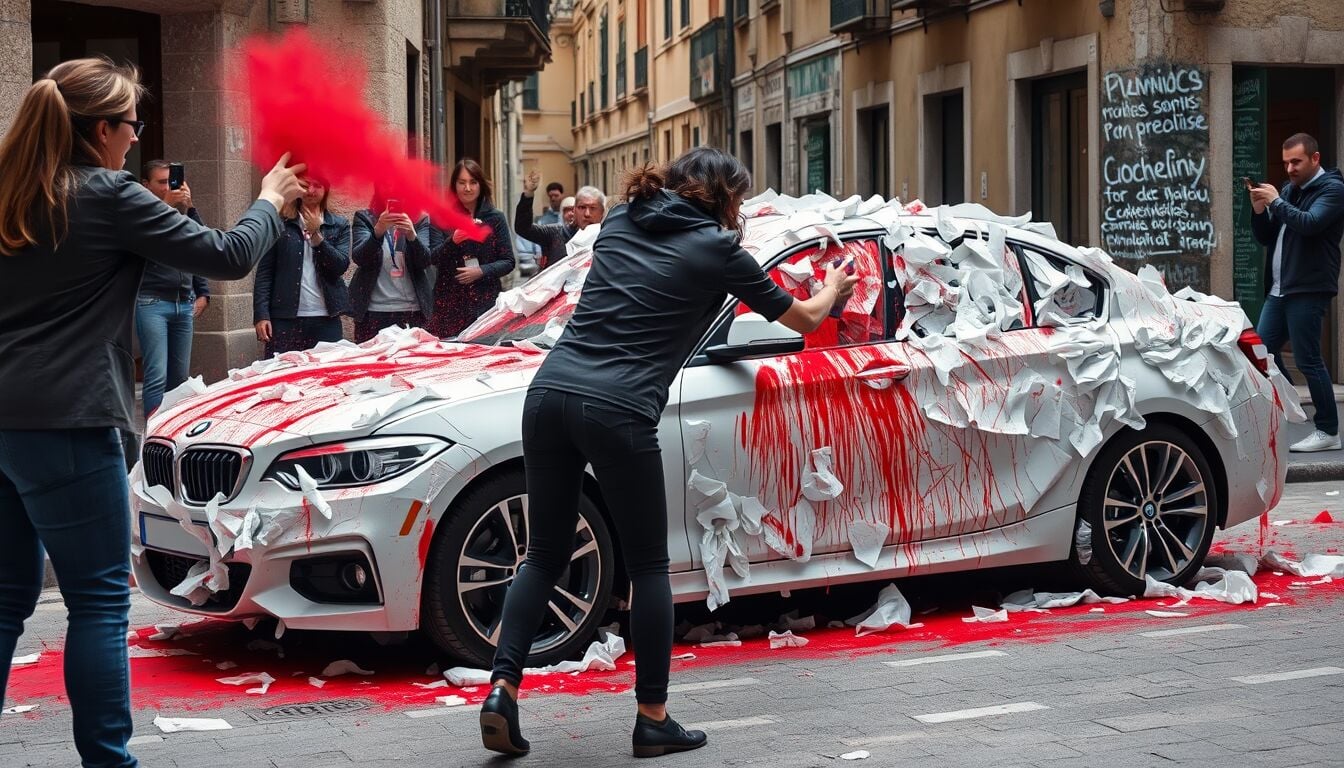 L’imbrattamento della Bmw configura verosimilmente il reato di danneggiamento: la carrozzeria è stata alterata con vernice spray, con costi di ripristino potenzialmente rilevanti a carico del proprietario o dell’autrice, in caso di condanna al risarcimento.