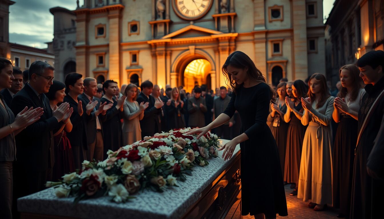 Cosa: un funerale segnato da un forte coinvolgimento emotivo e da un lungo applauso collettivo.