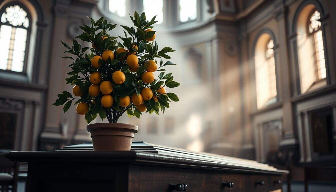 La presenza di piante di limoni rispetta la volontà di Enrica Bonaccorti di non avere fiori recisi, privilegiando un simbolo di memoria viva e durevole.