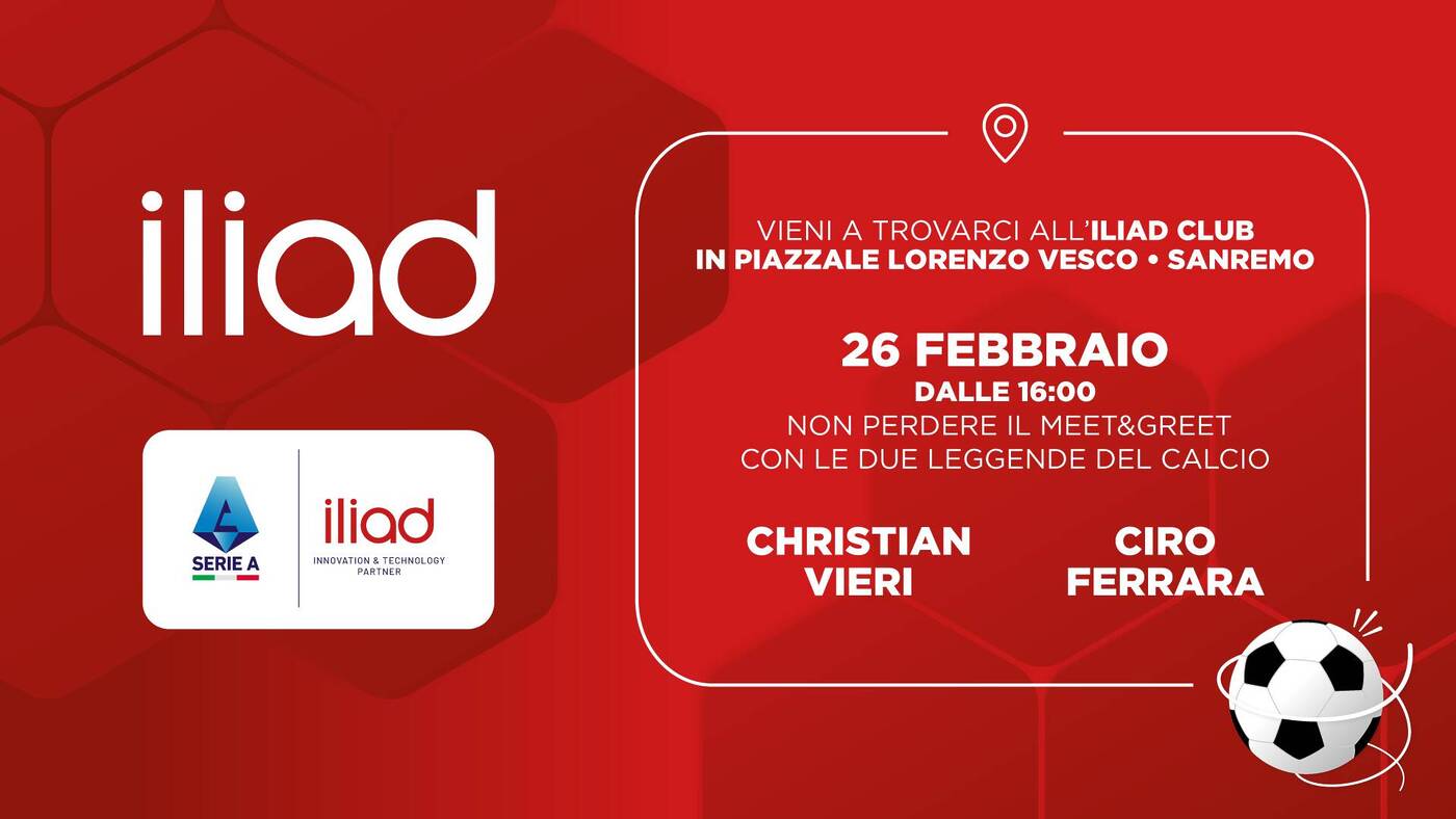 Iliad porta i tifosi a Sanremo con Christian Vieri e Ciro Ferrara