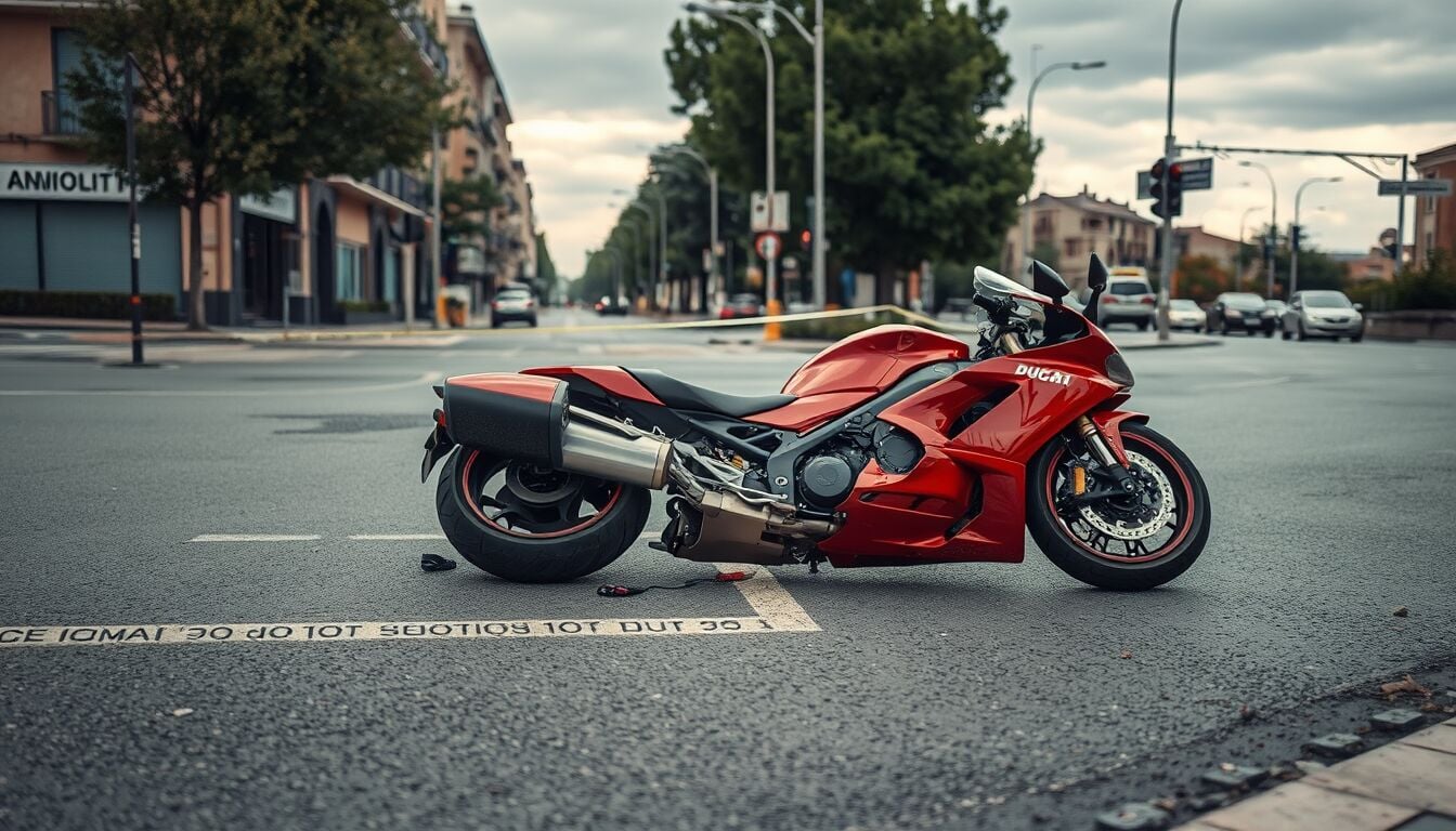 - Scontro tra la sua moto Ducati e una Renault Clio con cinque persone a bordo.