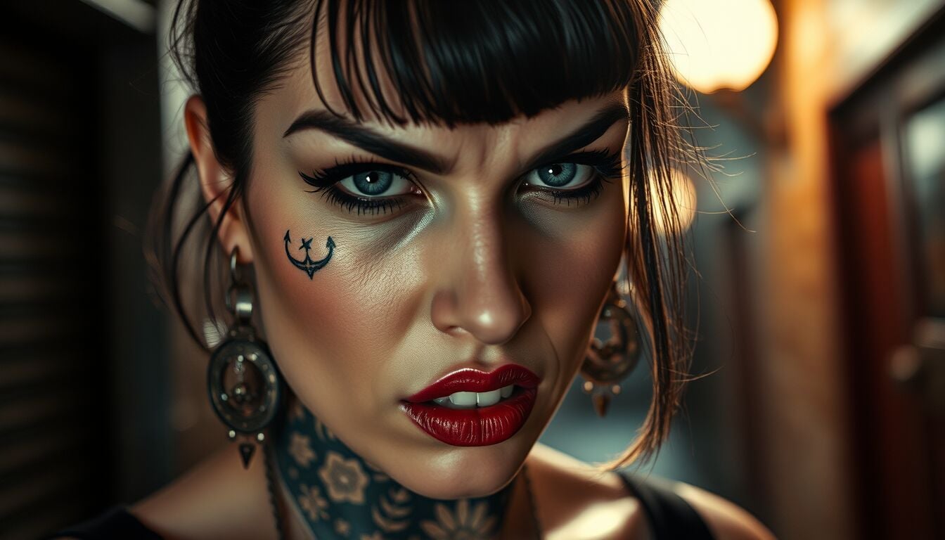 La coppia Frank–Penelope si trasforma in un duo alla Bonnie e Clyde, bandiera ultra-punk dei reietti e, soprattutto, delle giovani donne che in lei trovano un’icona di rivolta. Quel tratto nero tatuato su guancia e labbra diventa segno di riconoscimento, marchio di appartenenza a un movimento che rifiuta ruoli subordinati e rivendica corpo, parola e desiderio.