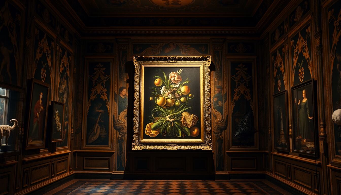 La sezione Stupire mette al centro la corte e il gioco visivo: l’Autoritratto in veste di Bacco di Caravaggio, l’Ortolano e Il cuoco di Giuseppe Arcimboldo, le opere di Teodoro Ghisi, Agostino e Annibale Carracci all’interno di una Wunderkammer ricostruita, con oggetti rari in materiali naturali (uova di struzzo, nautilus, dente di narvalo).