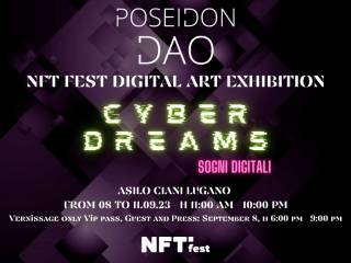 Digital art exhibition: 8.09 | 11.09 2023 – Asilo Ciani, Via Carlo Cattaneo, 6900 Lugano, Svizzera. In un’incantevole fusione di visioni distopiche del Cyberpunk e profonde indagini dei processi psichici che danno forma ai nostri sogni, nasce “Cyber Dreams – Sogni Digitali”, un’entusiasmante esposizione collettiva di artisti digitali.