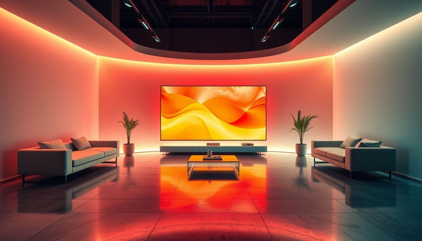 Nella “Fun room” il sistema audio “Party storm” e il Tv RGB MiniLED UR9 creano una scena multisensoriale dedicata alla socialità domestica, tra musica, luci e colore.