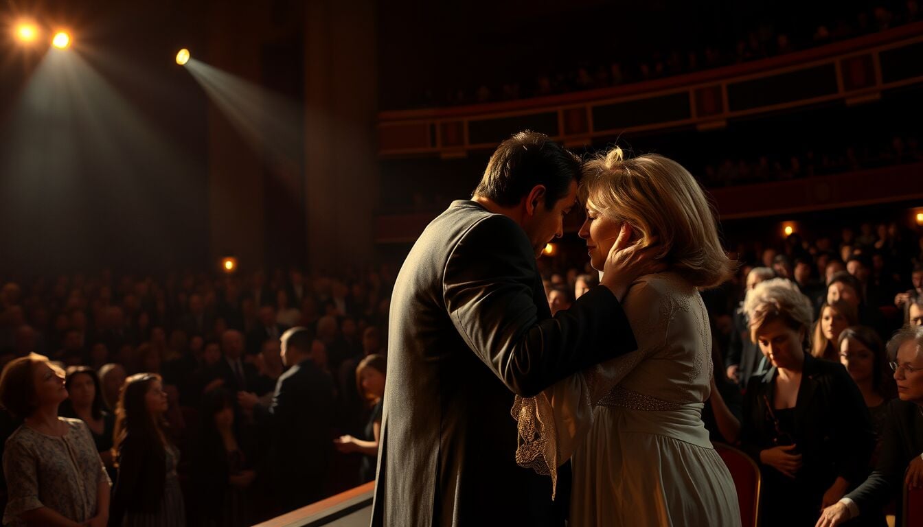 Il palco diventa spazio emotivo condiviso, dove lutto, consolazione e musica si intrecciano in tempo reale.