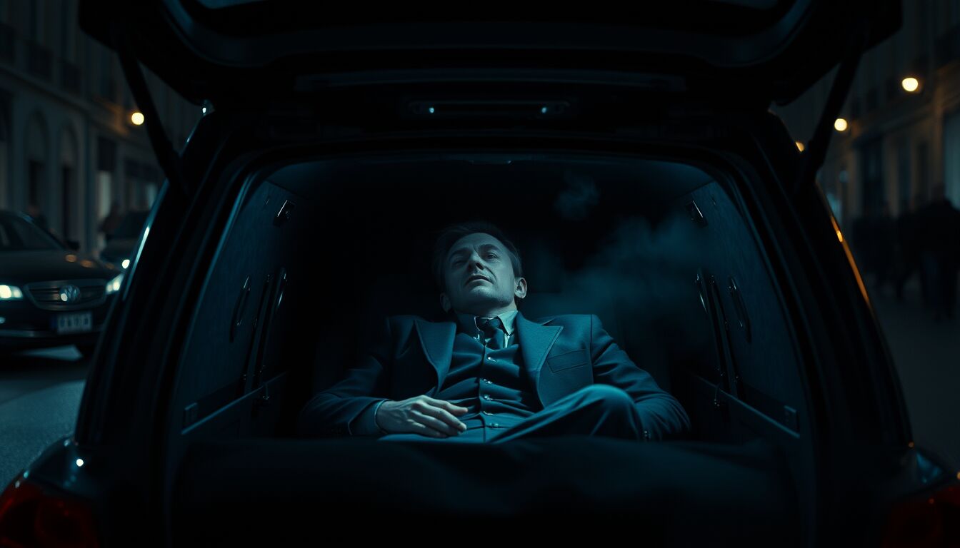 Casalino entra in una “bara di scena” per un trucco di sparizione e si ritrova realmente chiuso nella cassa, che viene caricata su un carro funebre e trasportata in un parco, in piena notte e con temperature rigide di febbraio.