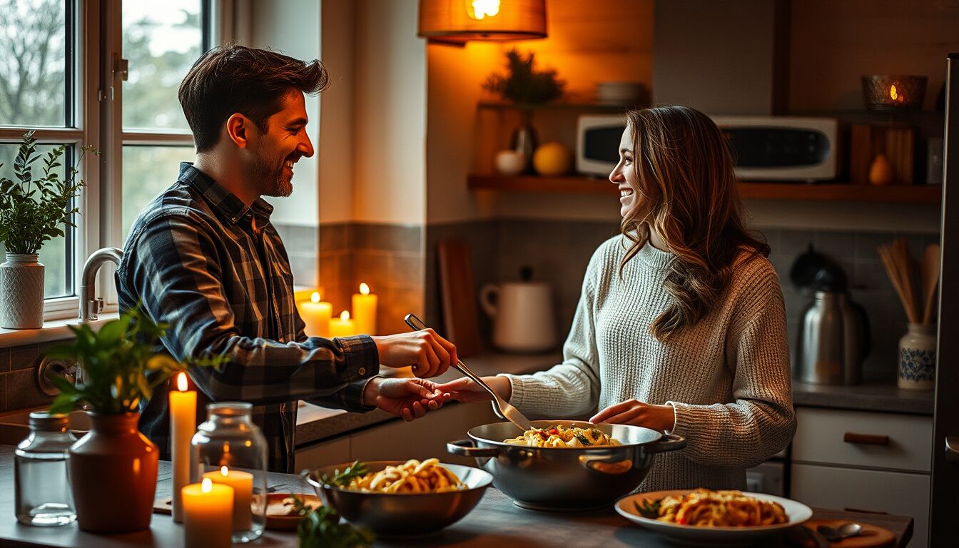 Chi ama le sfide può trasformare la cucina in un mini talent “casalingo”: ciascuno prepara una portata, ci si vota a vicenda e il premio può essere un massaggio, un bacio extra, o la scelta del film per il dopocena.