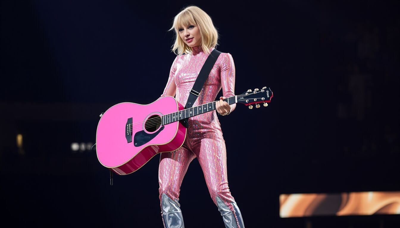 Le domande di marchio relative alla voce di Taylor Swift riguardano due frasi distintive: “Hey, it’s Taylor Swift” e “Hey, it’s Taylor”. In termini di proprietà intellettuale, si tratta di marchi sonori che mirano a cristallizzare nel diritto un elemento vocale immediatamente associabile all’artista. Parallelamente, la terza domanda copre un marchio visivo che ritrae la cantante con una chitarra rosa a tracolla nera, tuta iridescente multicolore e stivali argentati: una configurazione scenica già riconoscibile dal pubblico globale.